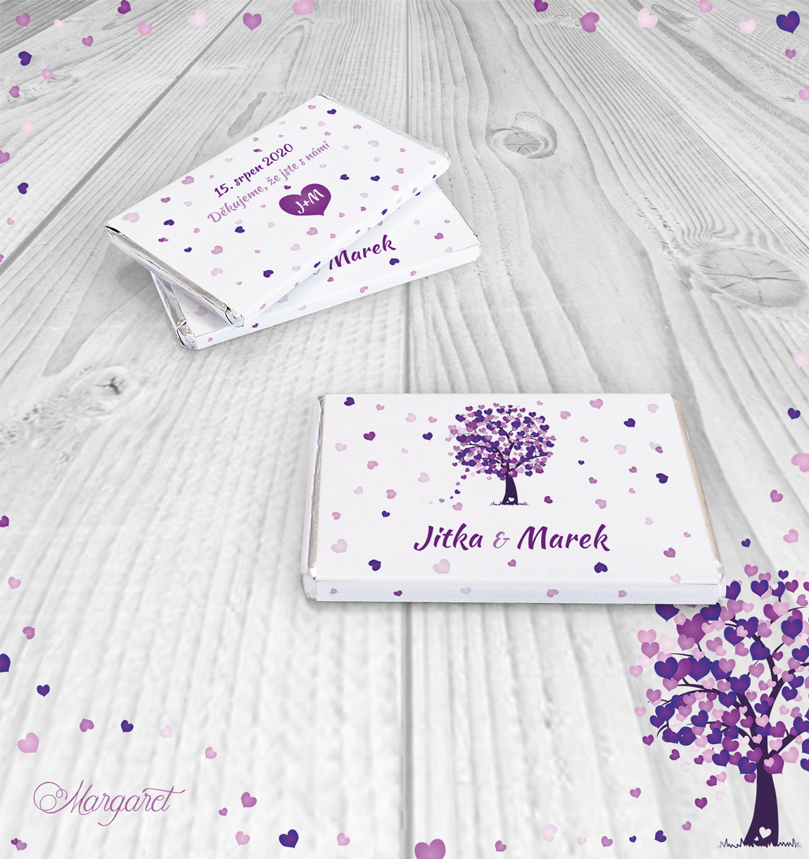Ve stejném designu pro vás máme také jmenovky, pozvánky ke stolu, čokoládky a mnoho dalšího: Svatební kolekce SK01 – vybírat můžete zde