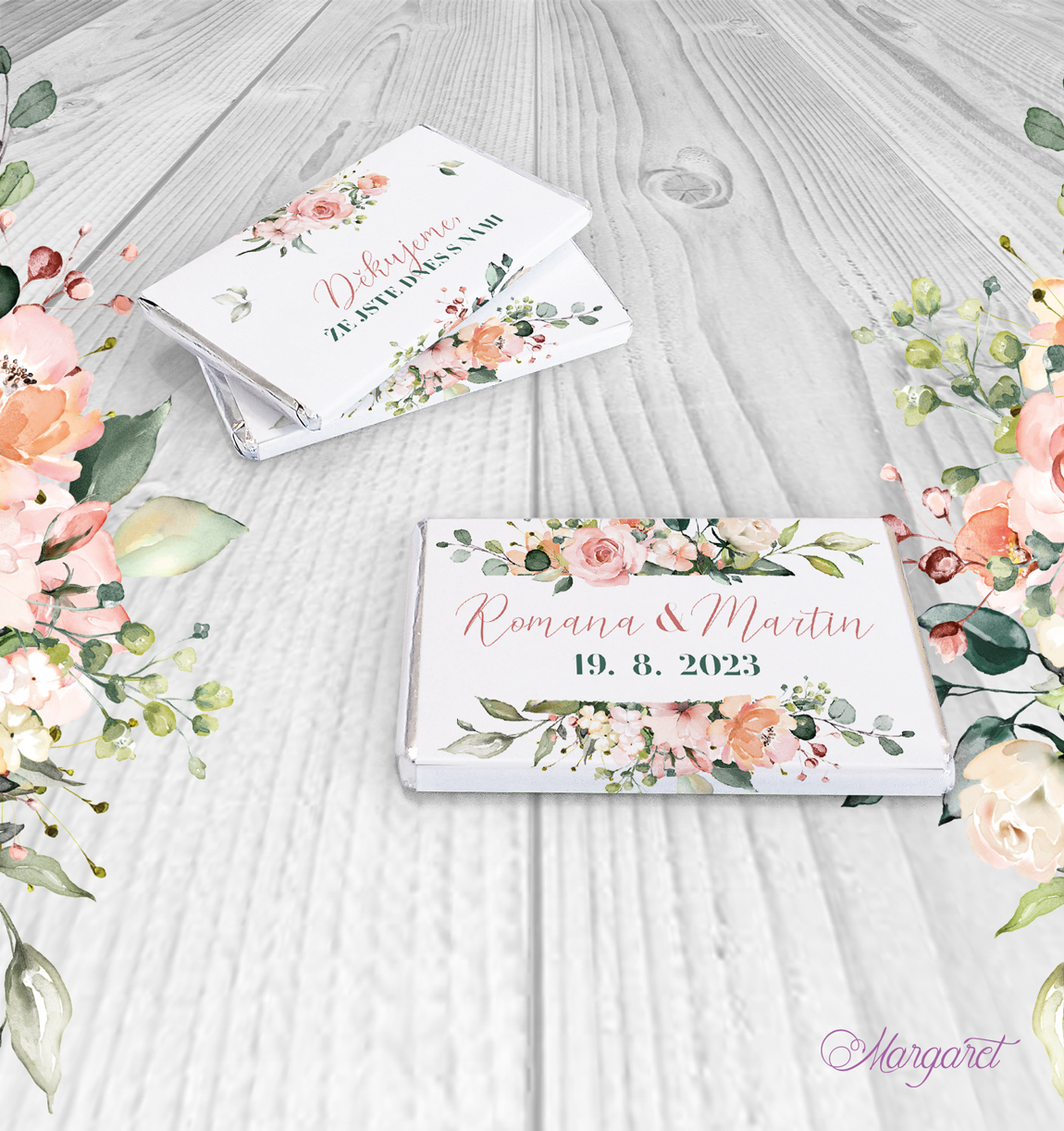 Ve stejném designu pro vás máme také jmenovky, pozvánky ke stolu, čokoládky a mnoho dalšího: Svatební kolekce SK11 – vybírat můžete zde