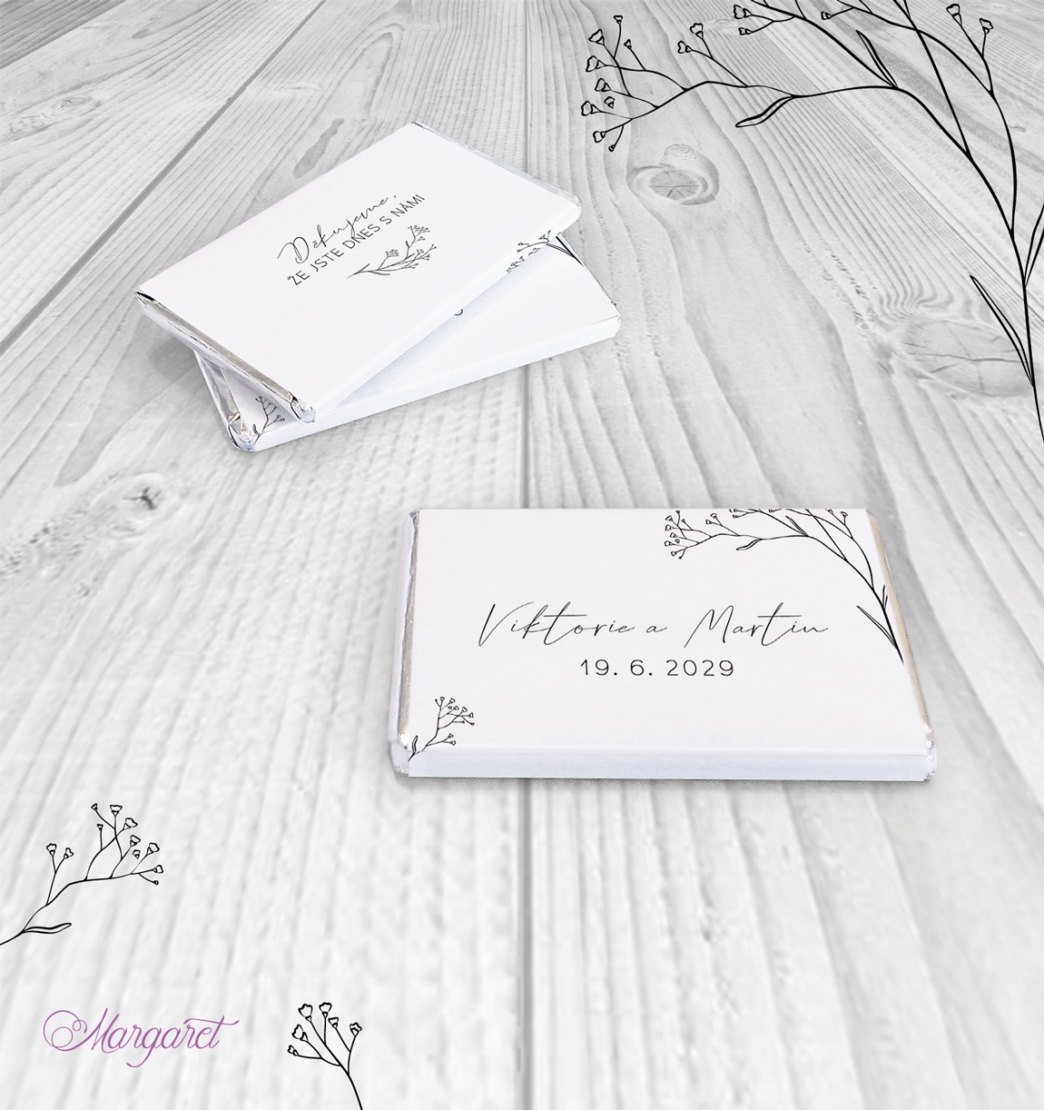 Ve stejném designu pro vás máme také jmenovky, pozvánky ke stolu, čokoládky a mnoho dalšího: Svatební kolekce SK31 – vybírat můžete zde