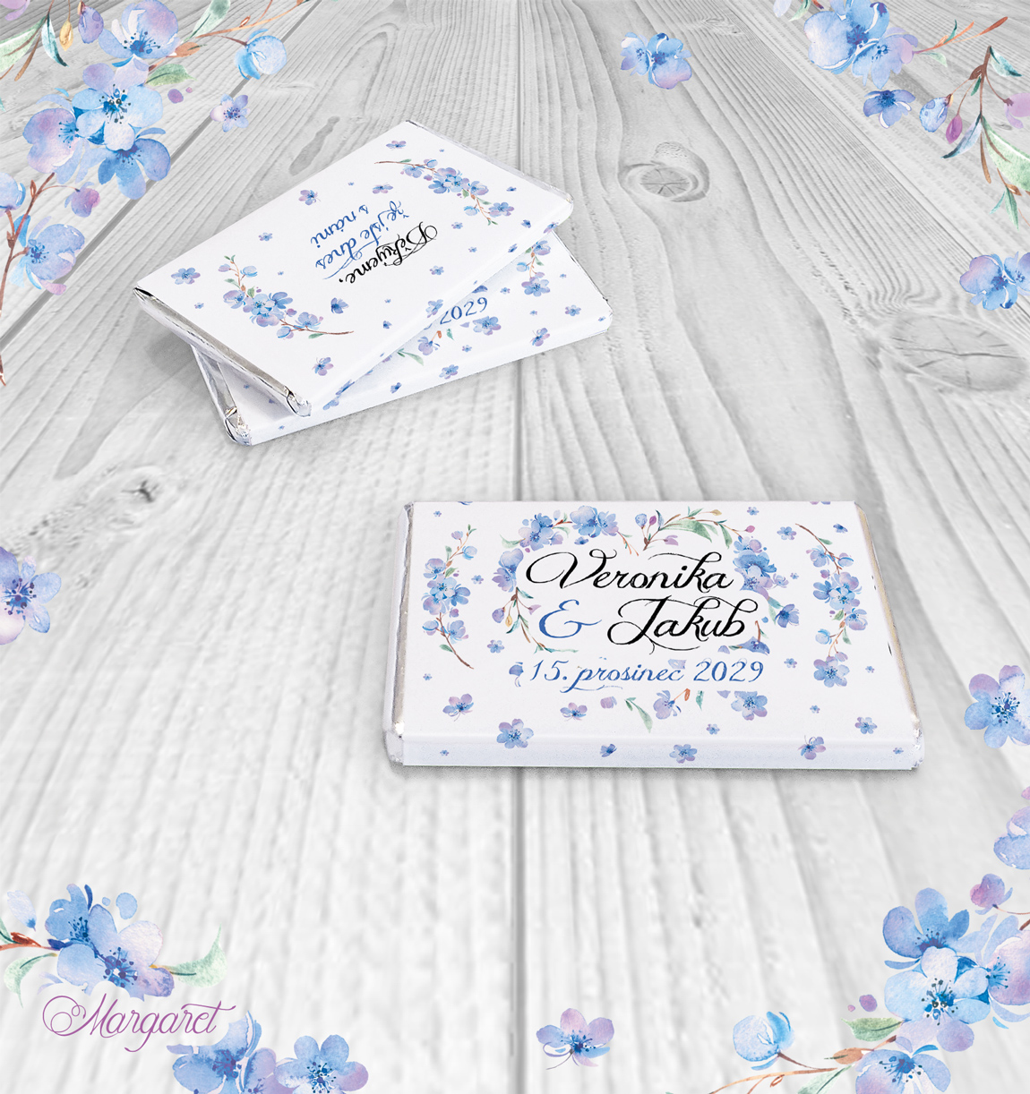 Ve stejném designu pro vás máme také jmenovky, pozvánky ke stolu, čokoládky a mnoho dalšího: Svatební kolekce SK33 – vybírat můžete zde