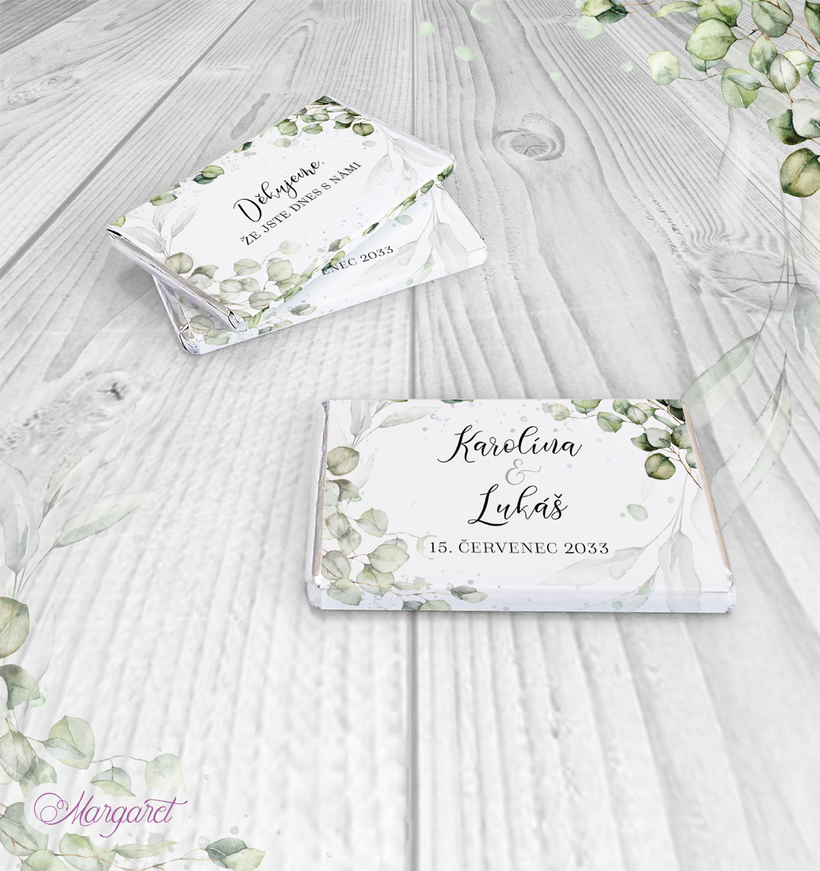 Ve stejném designu pro vás máme také jmenovky, pozvánky ke stolu, čokoládky a mnoho dalšího: Svatební kolekce SK36 – vybírat můžete zde