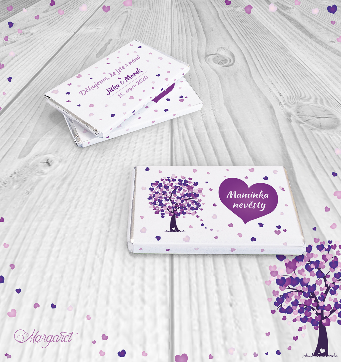 Ve stejném designu pro vás máme také jmenovky, pozvánky ke stolu, čokoládky a mnoho dalšího: Svatební kolekce SK01 – vybírat můžete zde