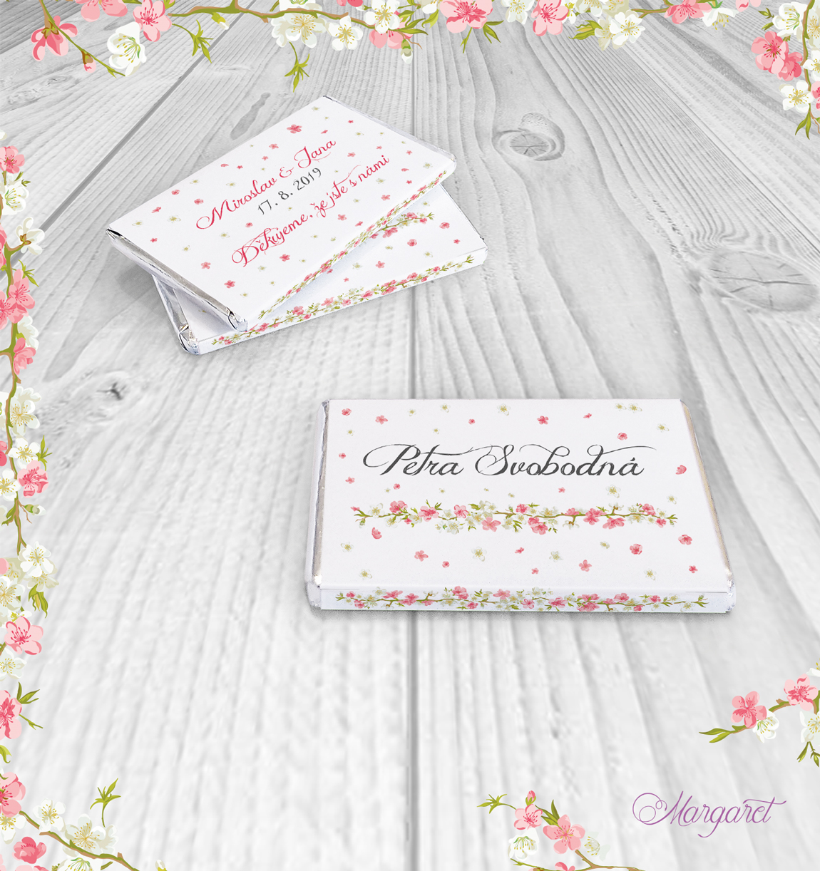 Ve stejném designu pro vás máme také jmenovky, pozvánky ke stolu, čokoládky a mnoho dalšího: Svatební kolekce SK02 – vybírat můžete zde