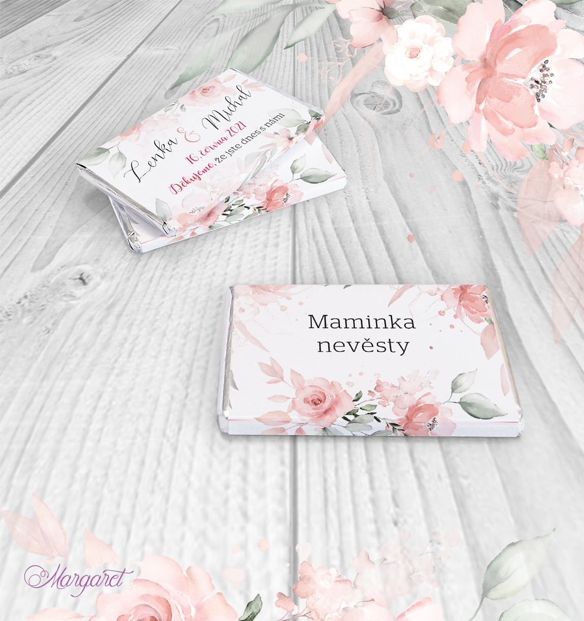 Ve stejném designu pro vás máme také jmenovky, pozvánky ke stolu, čokoládky a mnoho dalšího: Svatební kolekce SK15 – vybírat můžete zde