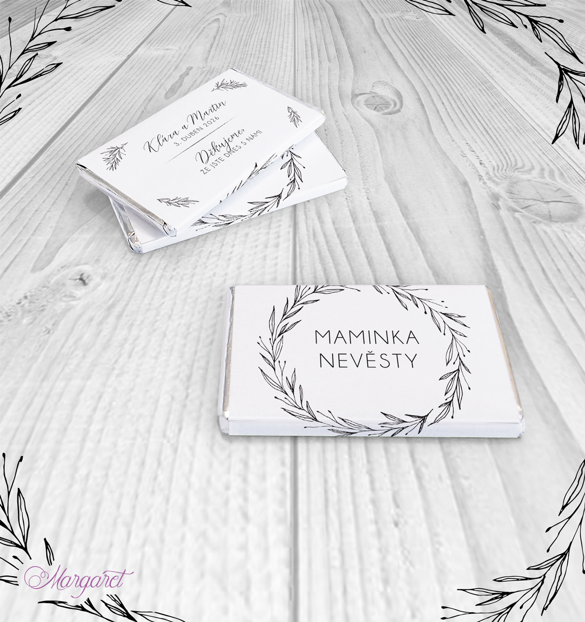 Ve stejném designu pro vás máme také jmenovky, pozvánky ke stolu, čokoládky a mnoho dalšího: Svatební kolekce SK20 – vybírat můžete zde