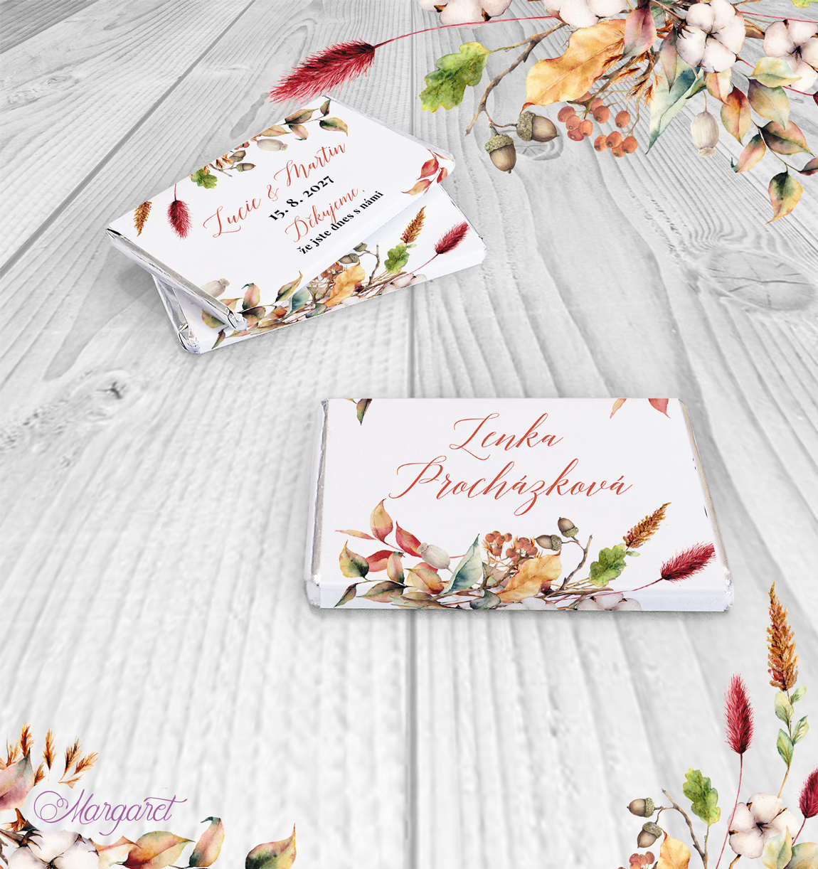 Ve stejném designu pro vás máme také jmenovky, pozvánky ke stolu, čokoládky a mnoho dalšího: Svatební kolekce SK32 – vybírat můžete zde