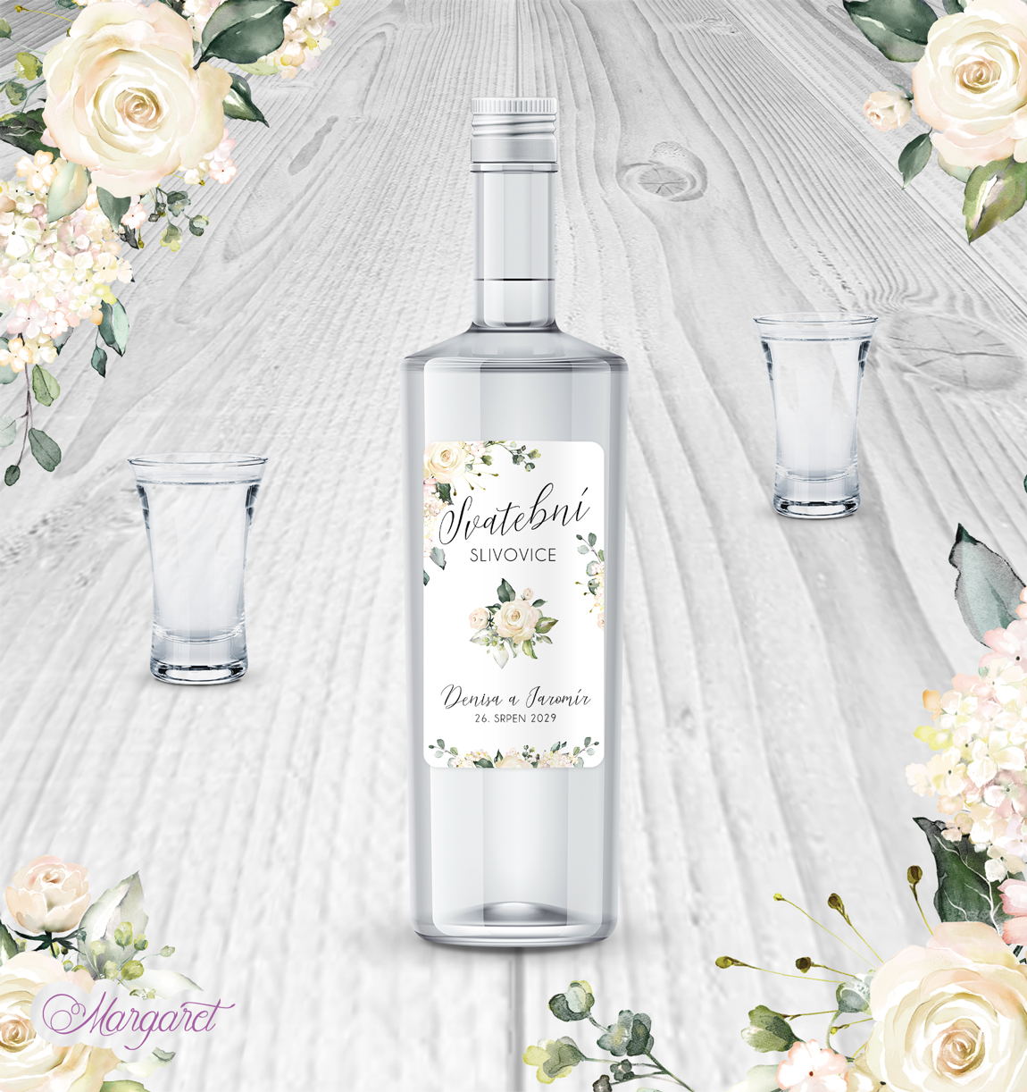 Potřebujete etiketu na domácí pálenku? Naše etikety jsou navržené, aby se hodily skvěle do stylu Vaší svatby, s Vašimi jmény a datem svatby.