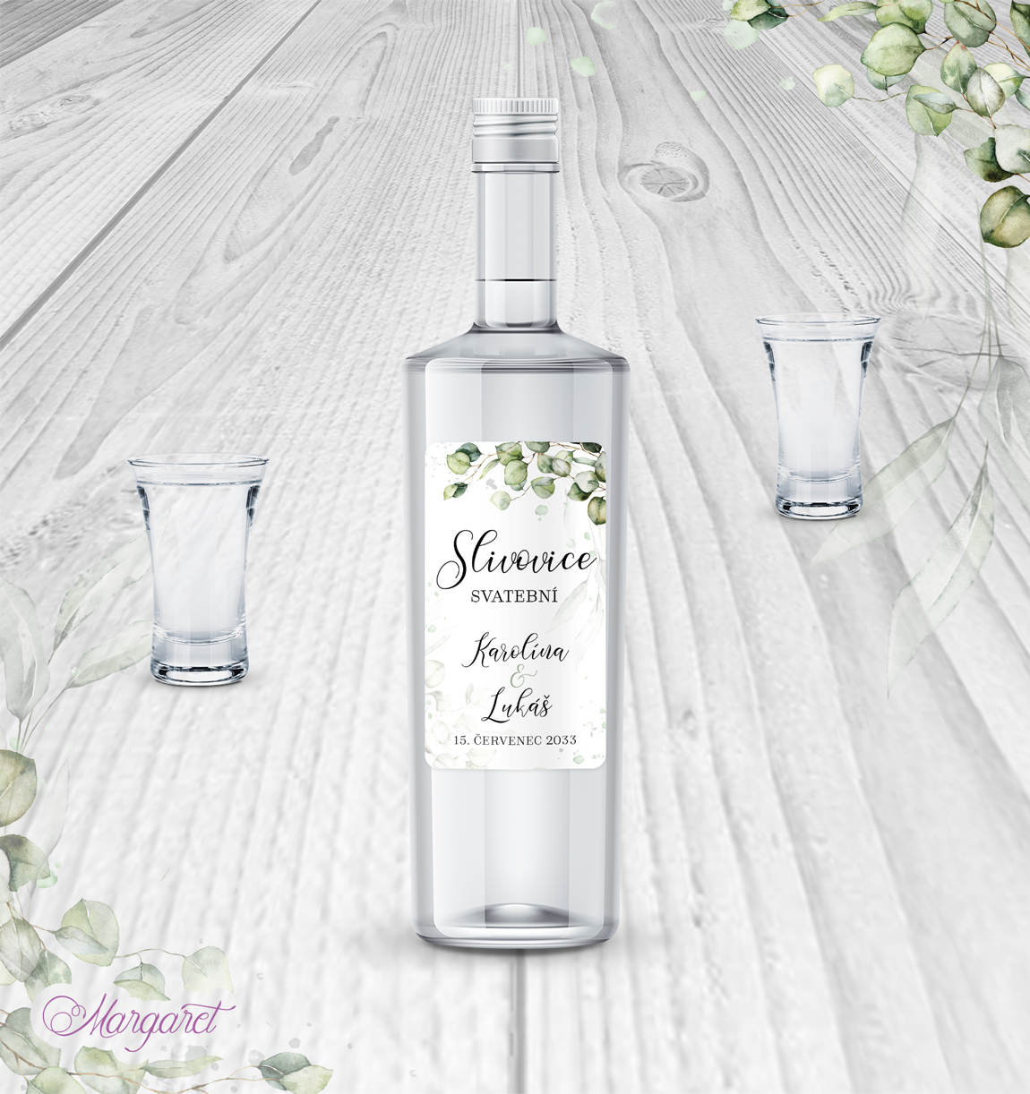 Potřebujete etiketu na domácí pálenku? Naše etikety jsou navržené, aby se hodily skvěle do stylu Vaší svatby, s Vašimi jmény a datem svatby.