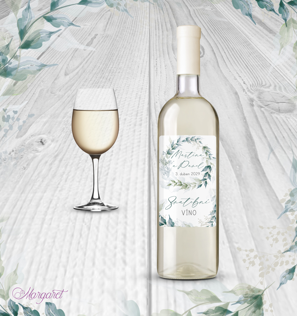 Krásná etiketa na víno v designu svatební kolekce, s Vašimi jmény a datem svatby.