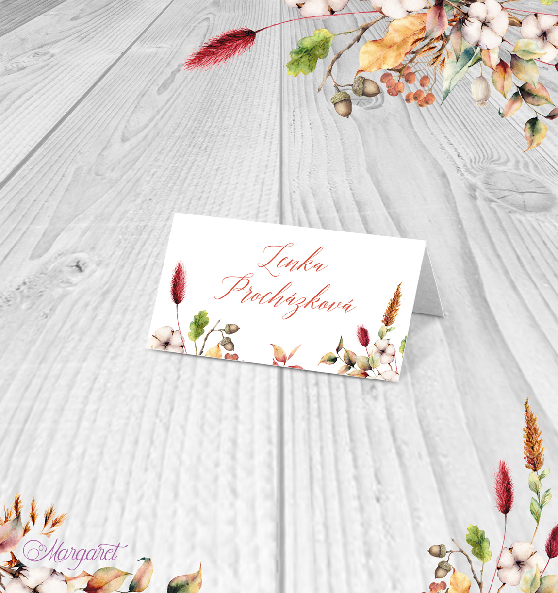Navrženo ve stylu vaší svatby – se jmény Vašich hostů. Po obdržení objednávky Vás budeme kontaktovat pro doplnění jmen.