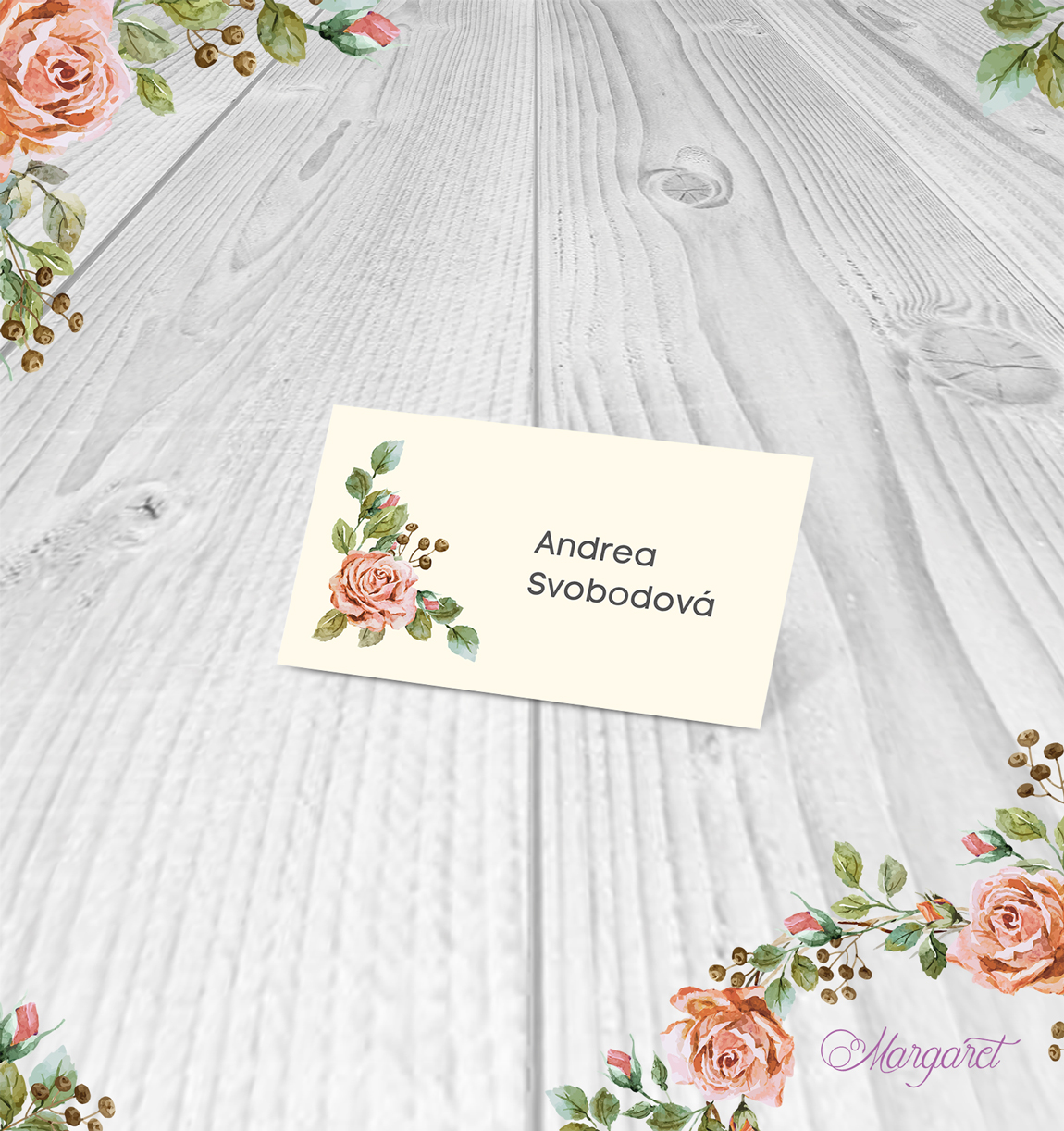 Navrženo ve stylu vaší svatby – se jmény Vašich hostů. Po obdržení objednávky Vás budeme kontaktovat pro doplnění jmen.