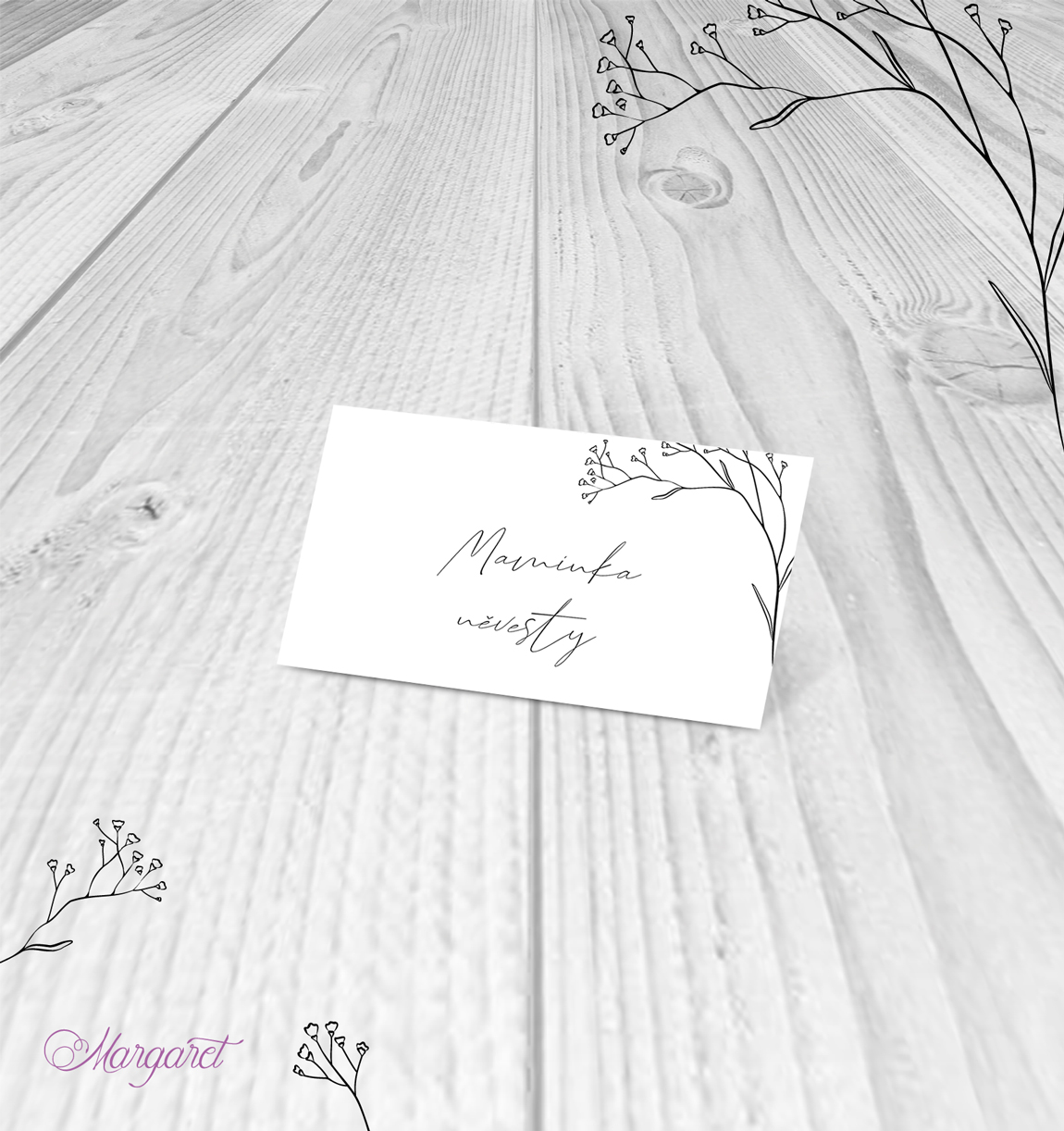 Navrženo ve stylu vaší svatby – se jmény Vašich hostů. Po obdržení objednávky Vás budeme kontaktovat pro doplnění jmen.