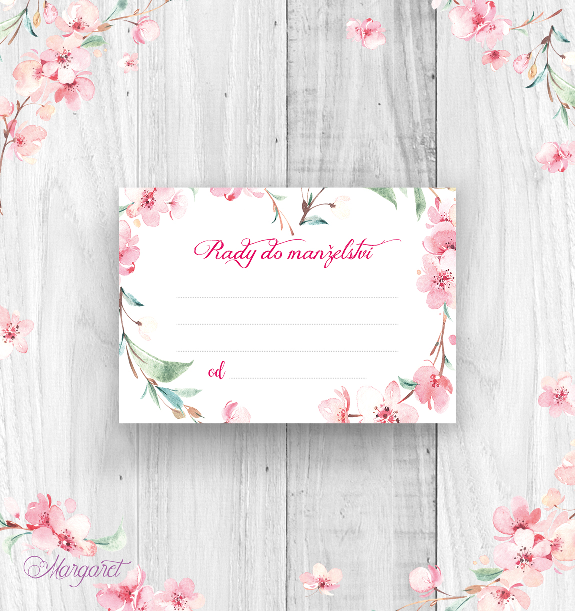 Další možností, jak zabavit Vaše hosty na svatbě, jsou kartičky “Rady do manželství”. Díky těmto kartám Vám mohou svatebčané poskytnout poučné, cenné nebo naopak zábavné rady do Vašeho nadcházejícího manželství. Hosté se zabaví při psaní, vy se zabavíte při čtení a navíc vám zůstanou krásné vzpomínky.
