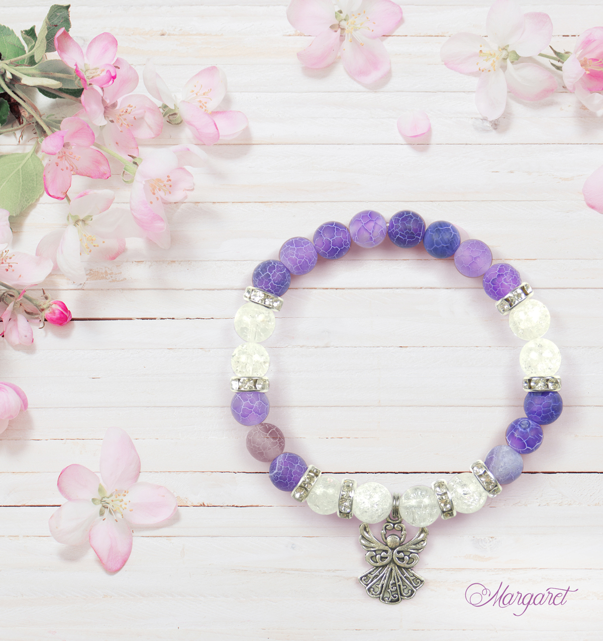 Náramek je vyrobený z minerálních korálků. Kovové části jsou bižuterní komponenty. Doporučujeme vyhýbat se kontaktu s vodou. Náramek udržujte v suchu. Nevhodné pro děti do 3 let, obsahuje malé části.