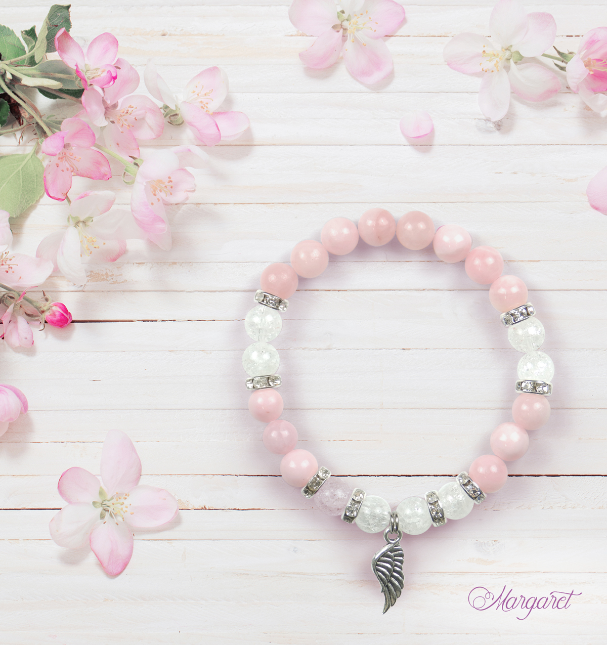 Náramek je vyrobený z minerálních korálků. Kovové části jsou bižuterní komponenty. Doporučujeme vyhýbat se kontaktu s vodou. Náramek udržujte v suchu. Nevhodné pro děti do 3 let, obsahuje malé části.