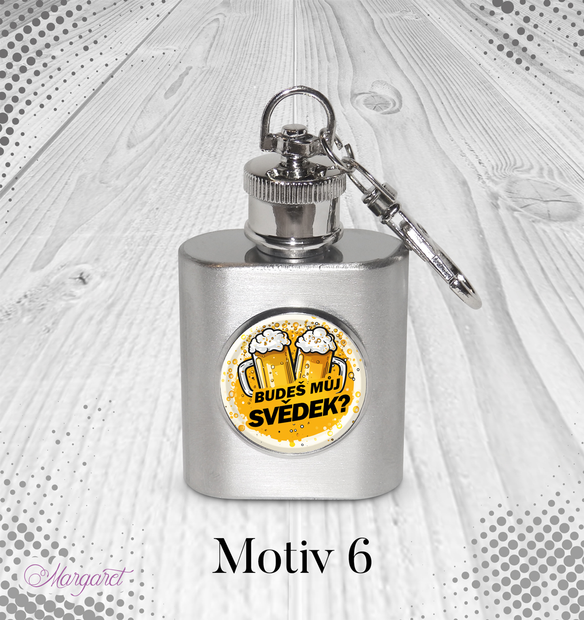 Malá pohotovostní placatka, jako přívěšek na klíče, v motivu Vaší svatby. Krásný dárek pro svědka, tatínka, bratra. Materiál – nerezová ocel. Po individuální domluvě je možné změnit text (např. Tatínkovi, Bratrovi, Sestře, Mamince, atd.).