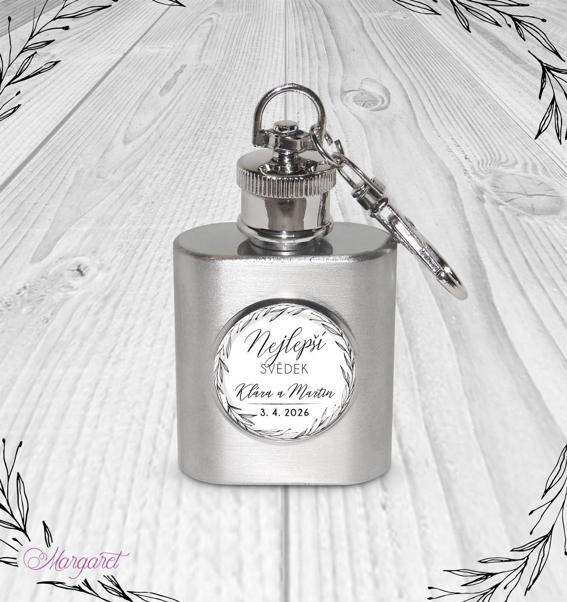 Malá pohotovostní placatka, jako přívěšek na klíče, v motivu Vaší svatby. Krásný dárek pro svědka, tatínka, bratra. S nápisem “Nejlepší svědek”. Materiál – nerezová ocel.