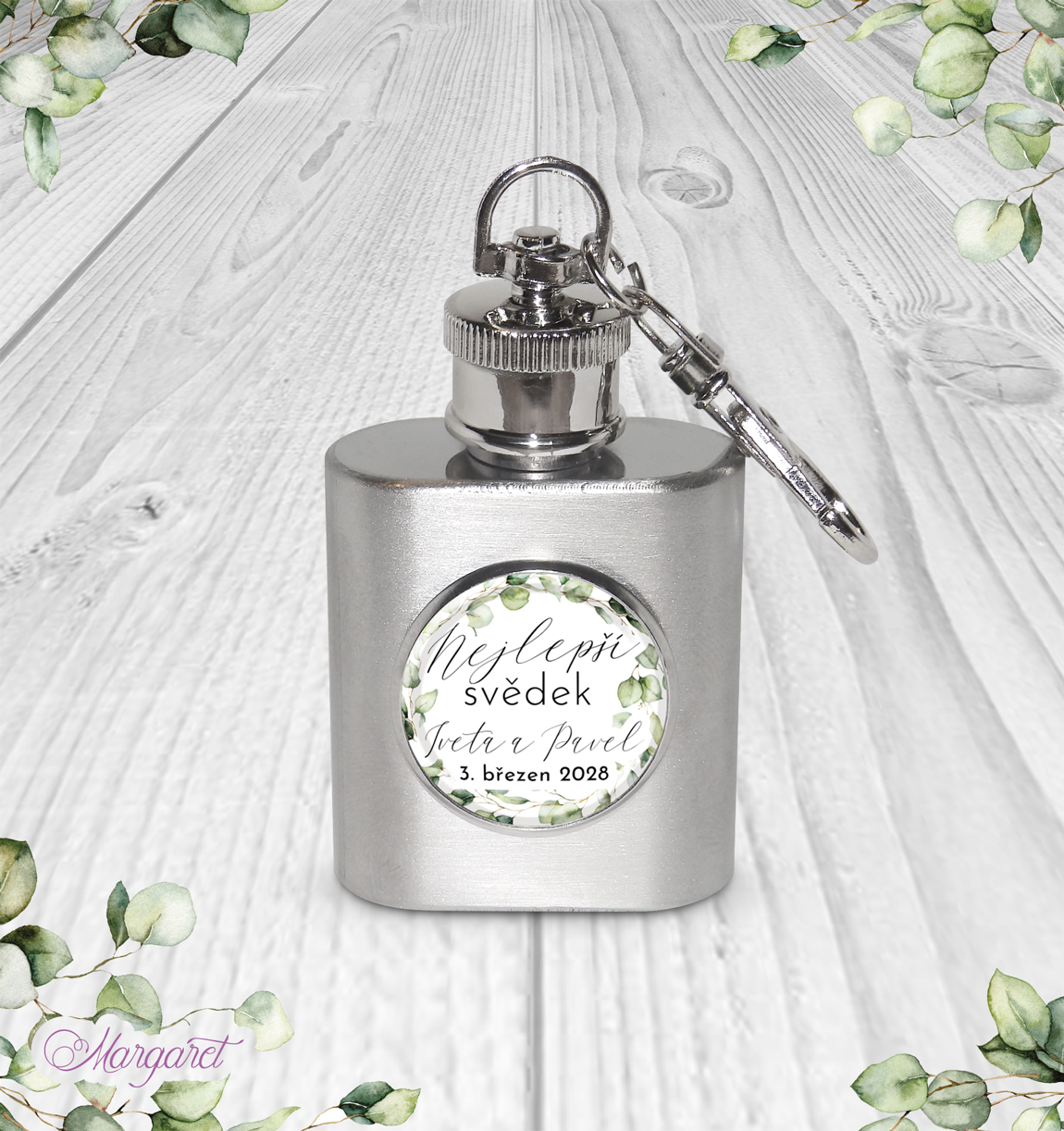Malá pohotovostní placatka, jako přívěšek na klíče, v motivu Vaší svatby. Krásný dárek pro svědka, tatínka, bratra. S nápisem “Nejlepší svědek”. Materiál – nerezová ocel.
