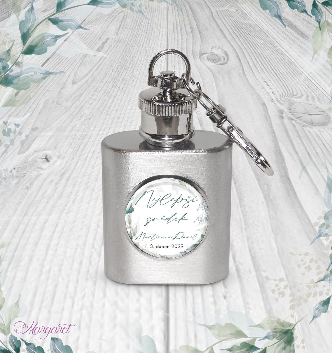Malá pohotovostní placatka, jako přívěšek na klíče, v motivu Vaší svatby. Krásný dárek pro svědka, tatínka, bratra. S nápisem “Nejlepší svědek”. Materiál – nerezová ocel.