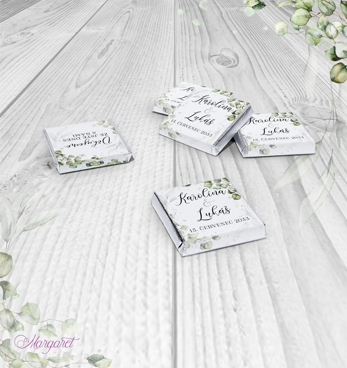 Neodmyslitelnou sladkou tečkou slavnostního dne jsou svatební čokoládky, které doplní Váš svatební stůl a potěší svatební hosty. Na etiketě jsou Vaše jména a datum svatby.