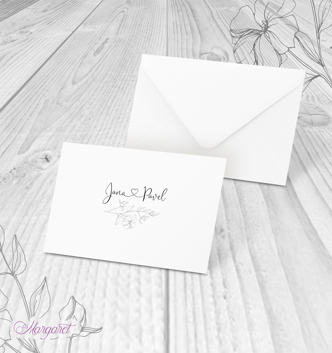 Obálka s potiskem pro oznámení A6 ze svatební kolekce, s Vašimi jmény a datem svatby.