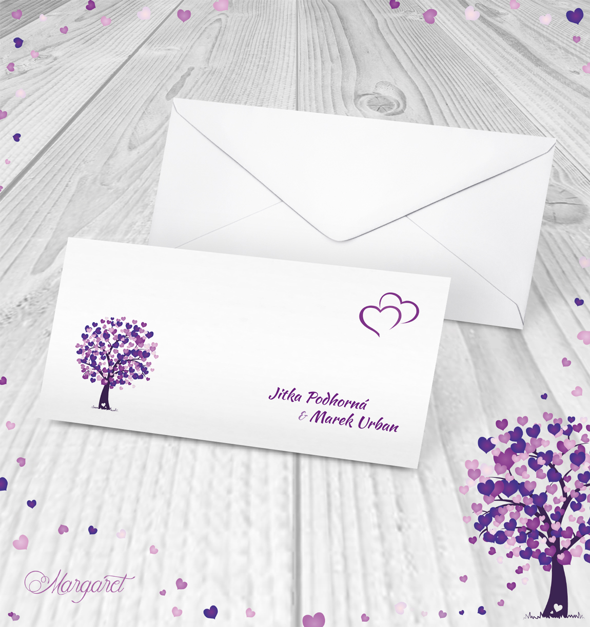 Obálka s potiskem pro oznámení DL ze svatební kolekce, s Vašimi jmény a datem svatby.
