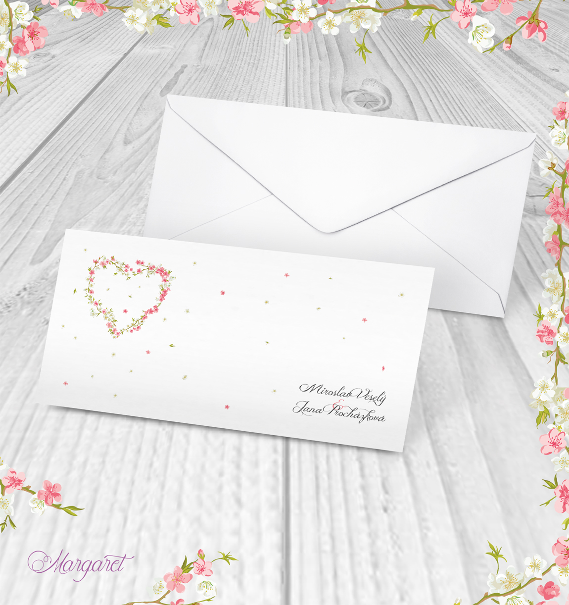 Obálka s potiskem pro oznámení DL ze svatební kolekce, s Vašimi jmény a datem svatby.