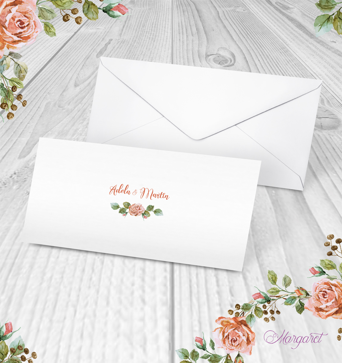 Obálka s potiskem pro oznámení DL ze svatební kolekce, s Vašimi jmény a datem svatby.