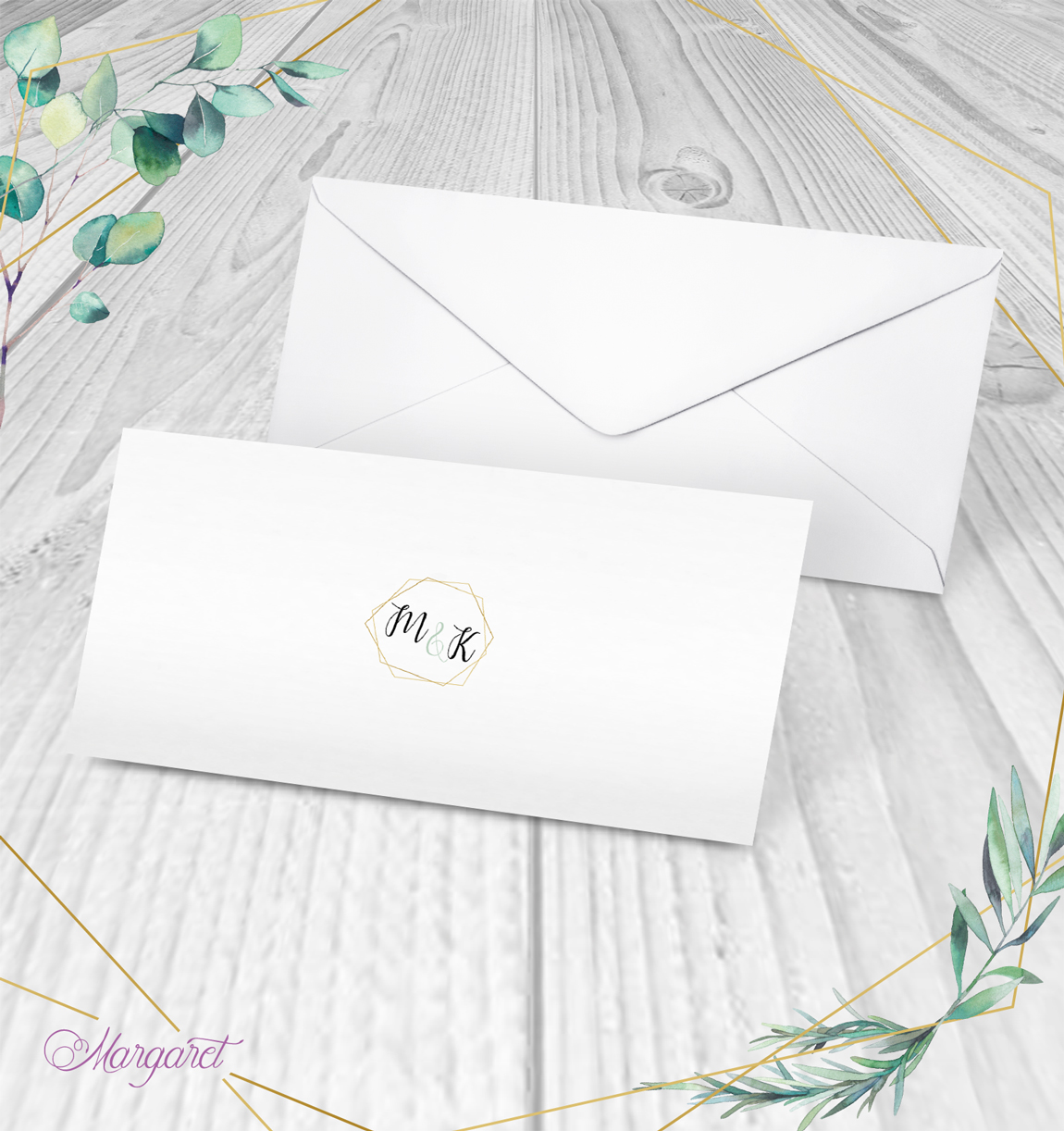Obálka s potiskem pro oznámení DL ze svatební kolekce, s Vašimi jmény a datem svatby.