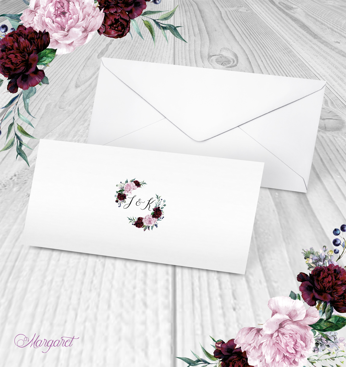 Obálka s potiskem pro oznámení DL ze svatební kolekce, s Vašimi jmény a datem svatby.