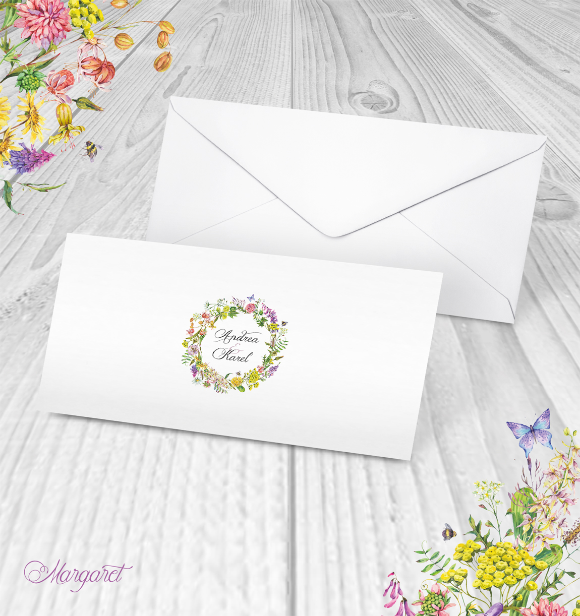 Obálka s potiskem pro oznámení DL ze svatební kolekce, s Vašimi jmény a datem svatby.