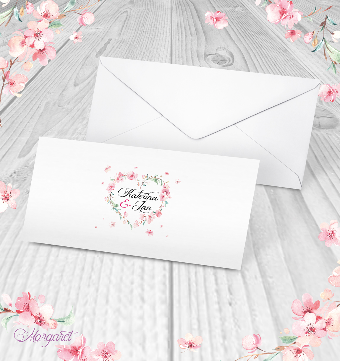 Obálka s potiskem pro oznámení DL ze svatební kolekce, s Vašimi jmény a datem svatby.