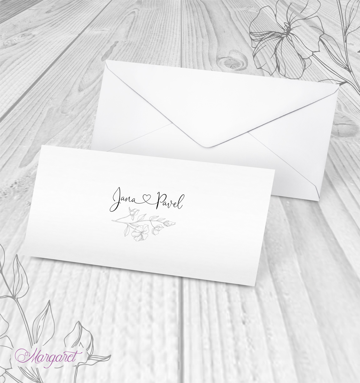 Obálka s potiskem pro oznámení DL ze svatební kolekce, s Vašimi jmény a datem svatby.