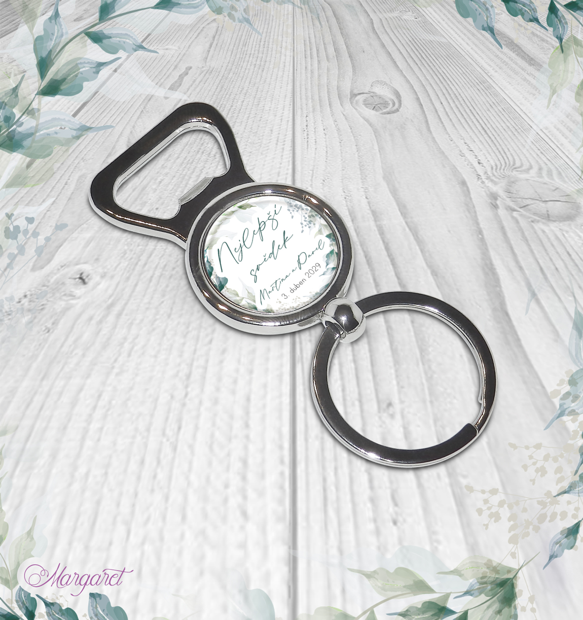 Otvírák jako přívěšek na klíče, krásný dárek pro svědka, tatínka, bratra. S Vašimi jmény a údaji. S nápisem “Nejlepší svědek”. Materiál – nerezová ocel.