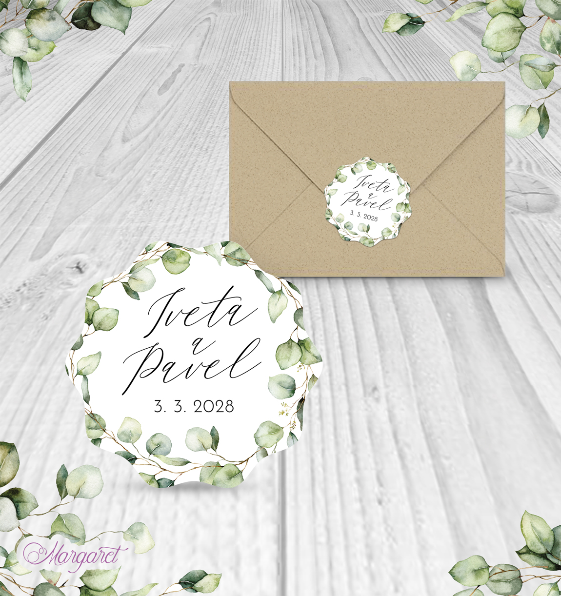 Ve stejném designu pro vás máme také jmenovky, pozvánky ke stolu, čokoládky a mnoho dalšího: Svatební kolekce SK21 – vybírat můžete zde