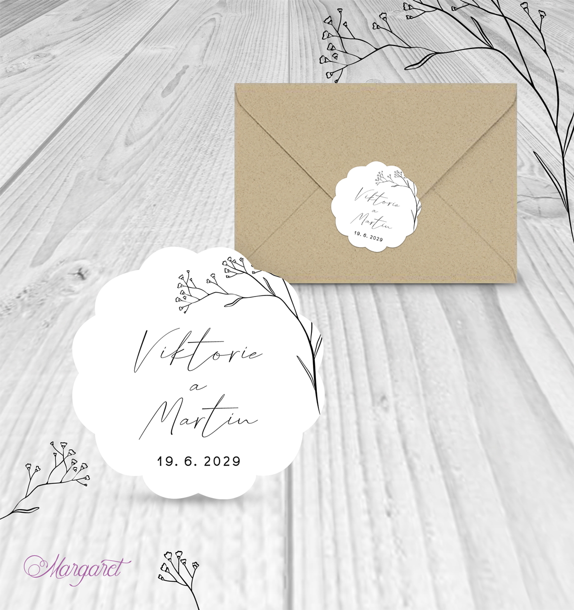 Ve stejném designu pro vás máme také jmenovky, pozvánky ke stolu, čokoládky a mnoho dalšího: Svatební kolekce SK31 – vybírat můžete zde