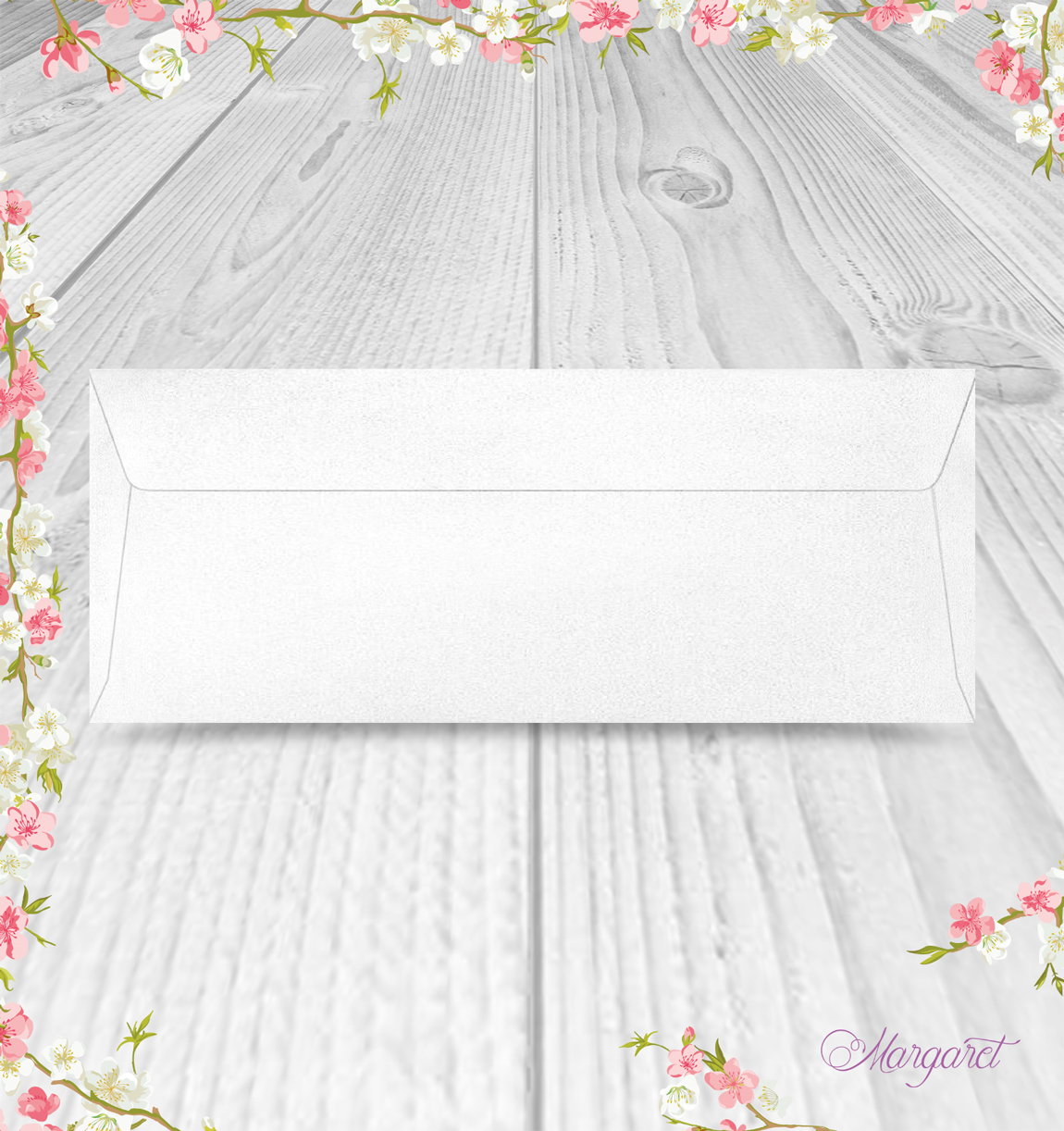 Perleťová (metalická) obálka se rovnou klopou pro oznámení DL.
