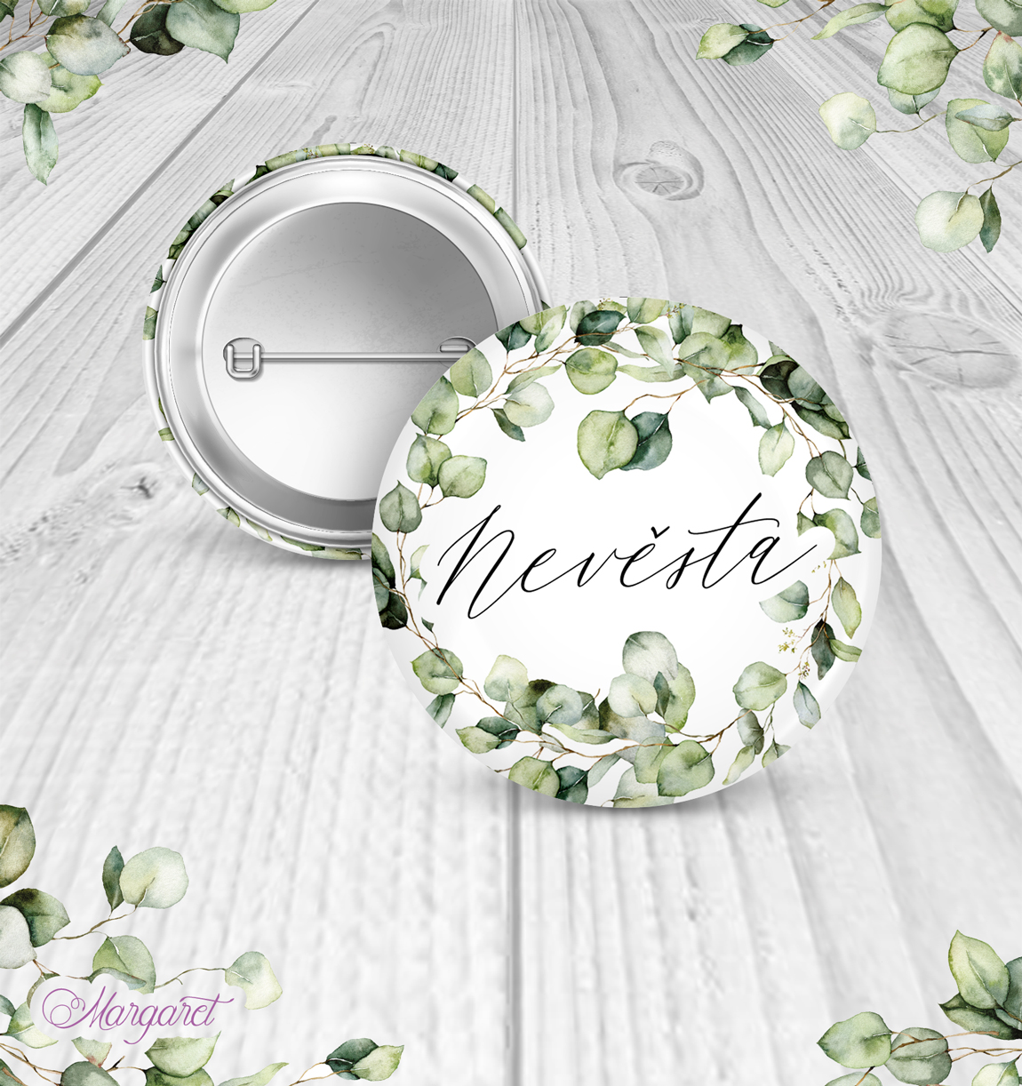 Placka na rozlučku se svobodou – s nápisem "Nevěsta", v designu Vaší svatby.