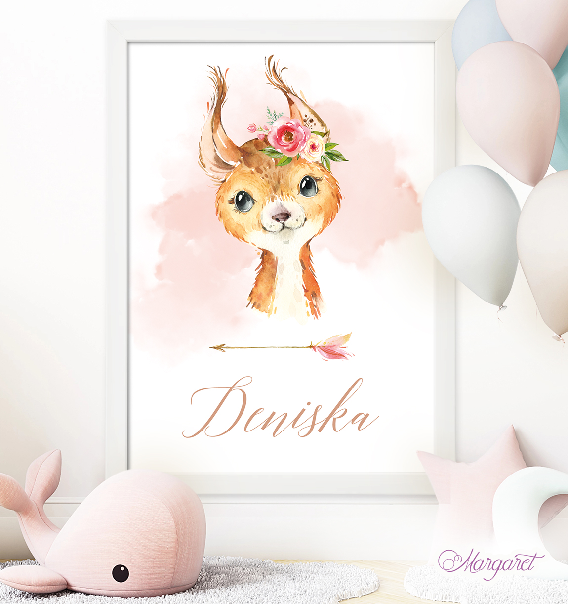 Dětský plakátek se zvířátky, se jménem vašeho děťátka – plakát do pokoje pro malé děti a miminka (v nabídce také varianta s údaji – datum narození, porodní výška a váha).