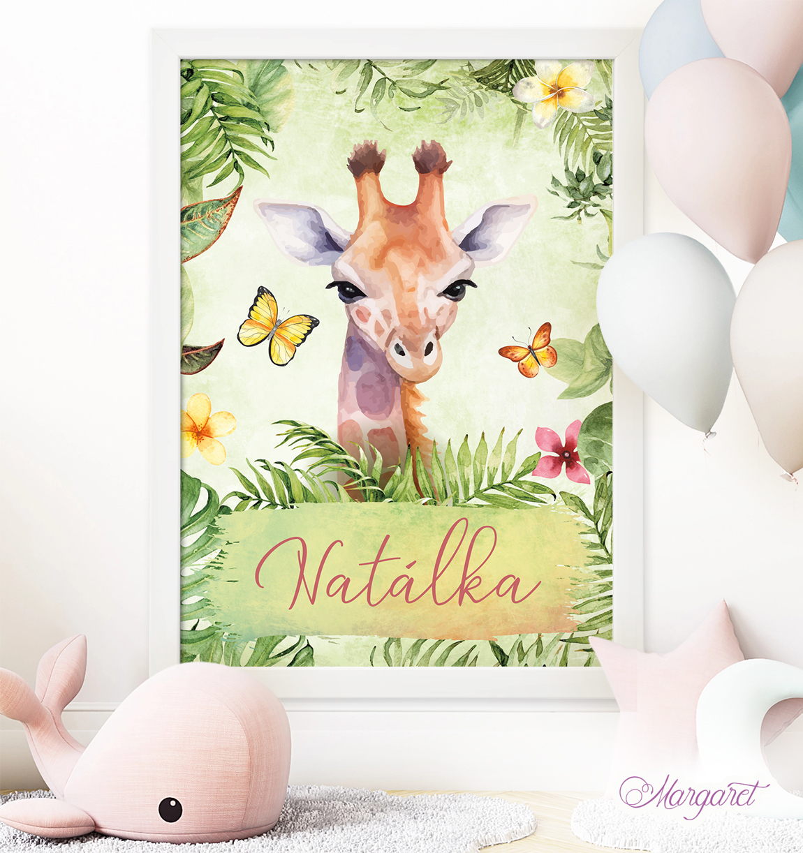 Dětský plakátek se zvířátky, se jménem vašeho děťátka – plakát do pokoje pro malé děti a miminka (v nabídce také varianta s údaji – datum narození, porodní výška a váha).