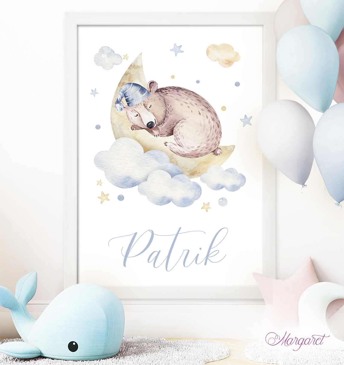 Každý plakát je personalizovaný – se jménem dítěte. Tento originální plakát bude nejen krásnou dekorací, ale i jedinečnou památkou na první chvíle života vašeho děťátka.