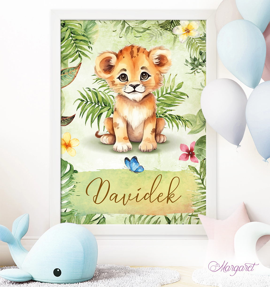 Dětský plakátek se zvířátky, se jménem vašeho děťátka – plakát do pokoje pro malé děti a miminka (v nabídce také varianta s údaji – datum narození, porodní výška a váha).