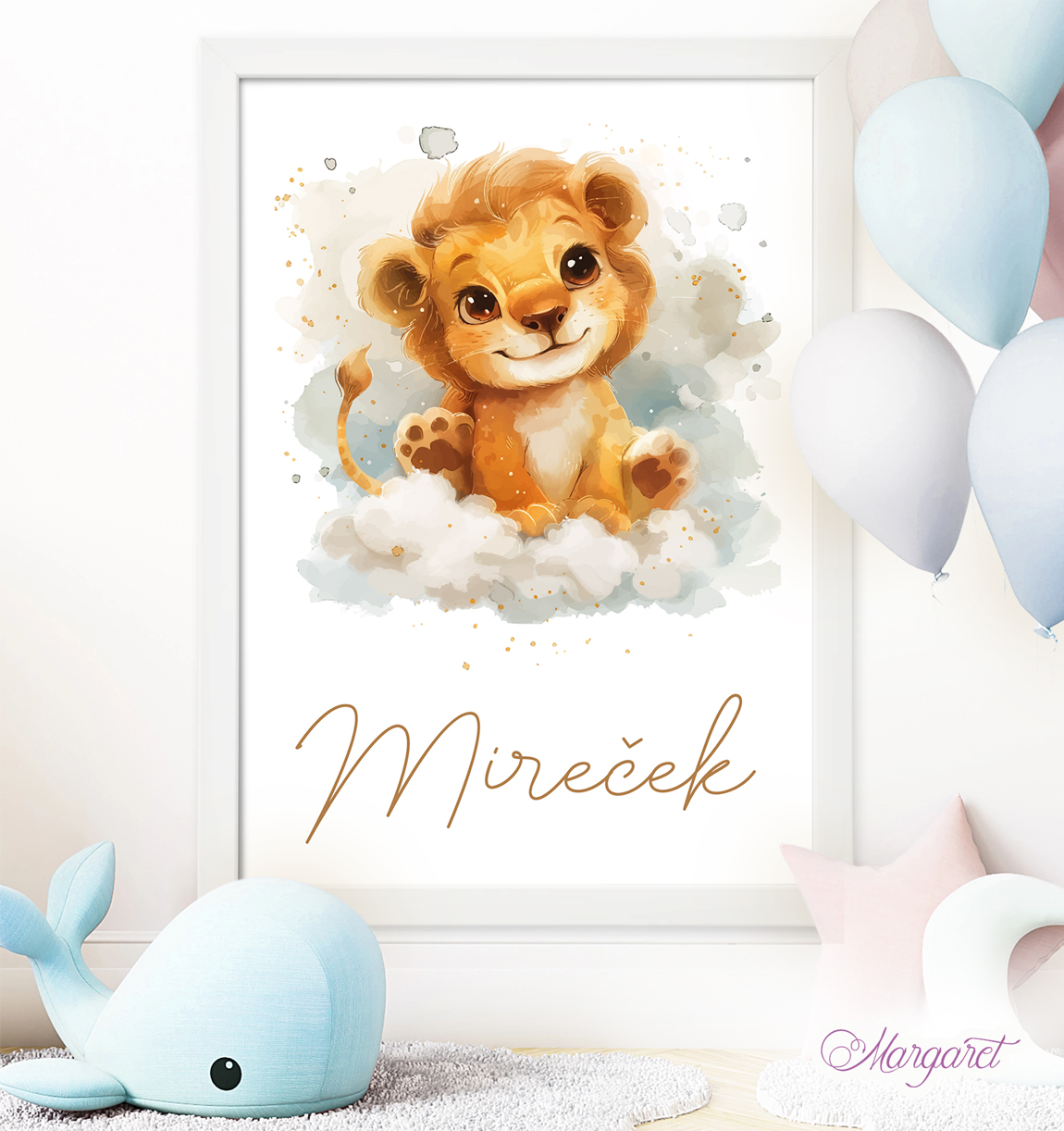 Dětský plakátek se zvířátky, se jménem vašeho děťátka – plakát do pokoje pro malé děti a miminka (v nabídce také varianta s údaji – datum narození, porodní výška a váha).