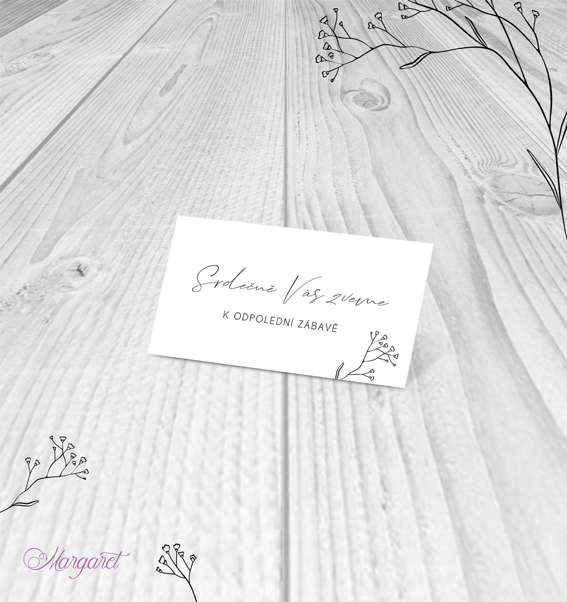 Pozvánka k odpolední zábavě. Stylová kartička, ideální doplněk ke svatebnímu oznámení, v designu Vaší svatby.