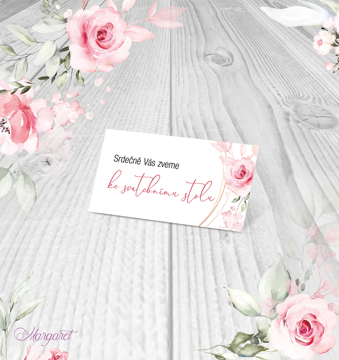Pozvánka ke svatebnímu stolu nebo ke svatební hostině. Stylová kartička, ideální doplněk ke svatebnímu oznámení, v designu Vaší svatby.