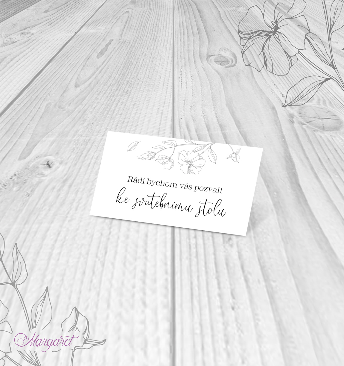 Pozvánka ke svatebnímu stolu nebo ke svatební hostině. Stylová kartička, ideální doplněk ke svatebnímu oznámení, v designu Vaší svatby.