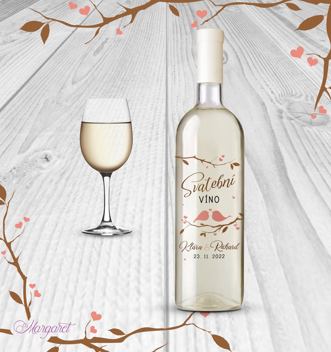 Ve stejném designu pro vás máme také jmenovky, pozvánky ke stolu, čokoládky a mnoho dalšího: Svatební kolekce SK12 – vybírat můžete zde