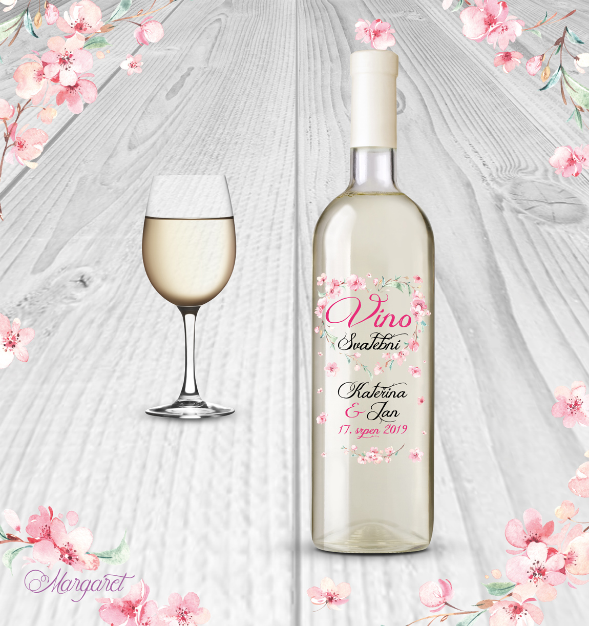 Luxusní průhledná etiketa na víno. Naše etikety jsou navržené, aby se hodily skvěle do stylu Vaší svatby, s Vašimi jmény a datem svatby.