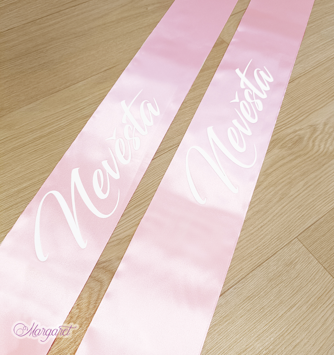 Barva: světle růžová s bílým nápisem "Nevěsta"