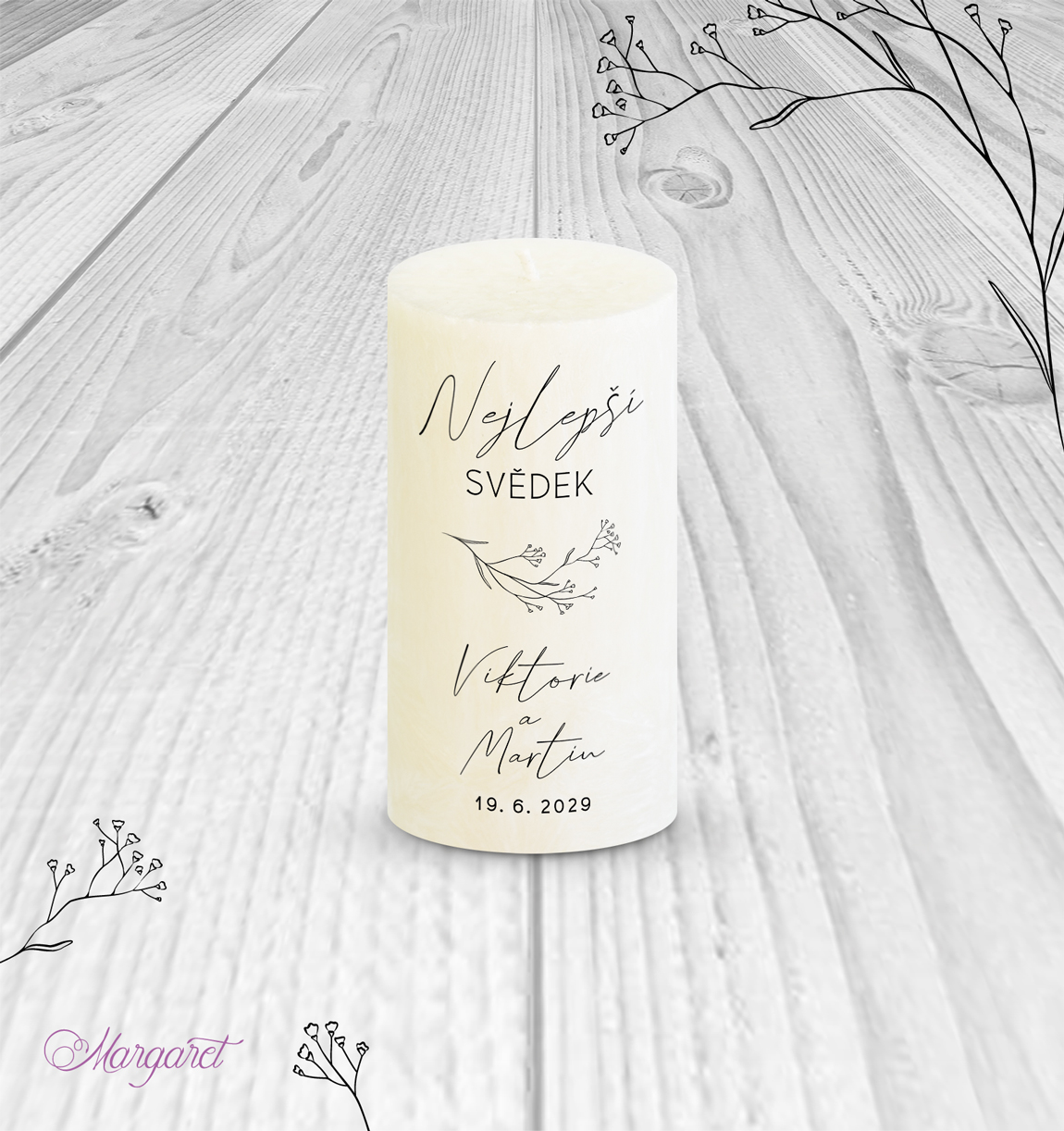 Nabízíme originální dárek pro svědkyni nebo svědka. Na svíčce jsou uvedeny vaše jména i datum svatby, takže se jedná o krásný dáreček.